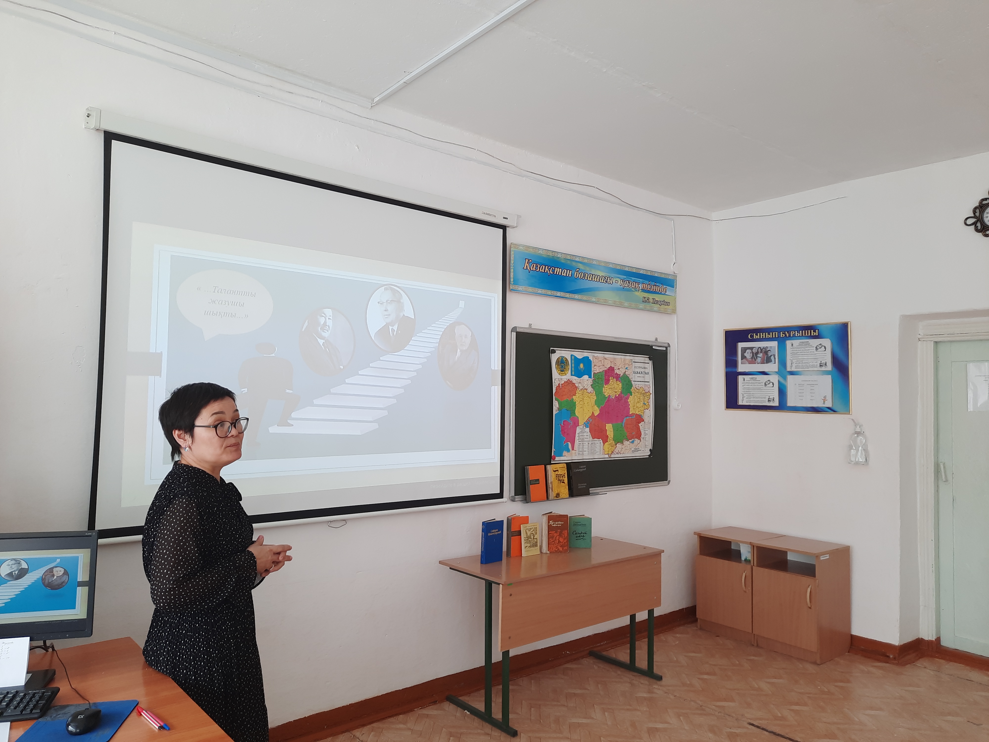 - Учитель русского языка и литературы Зайкина Р.Т. познакомила учащихся с биографией М.Жумабаева.