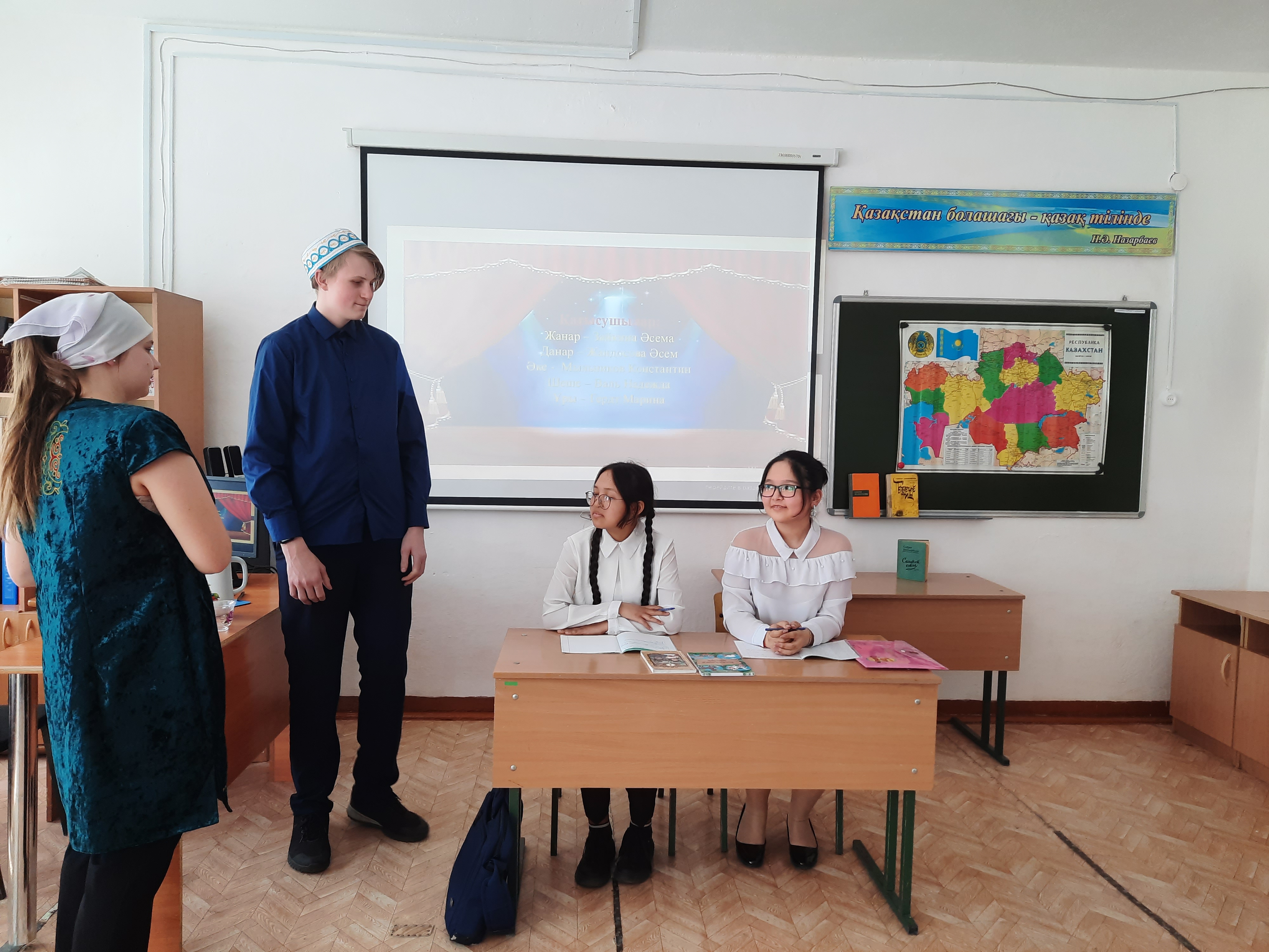 Обучающиеся ознакомились с биографией писателя, инсценировали отрывок из произведения "Жанар мен Данар", отвечали на вопросы викторины, переводили на казахский язык с английского языка данные из биографии С. Шаймерденова.
