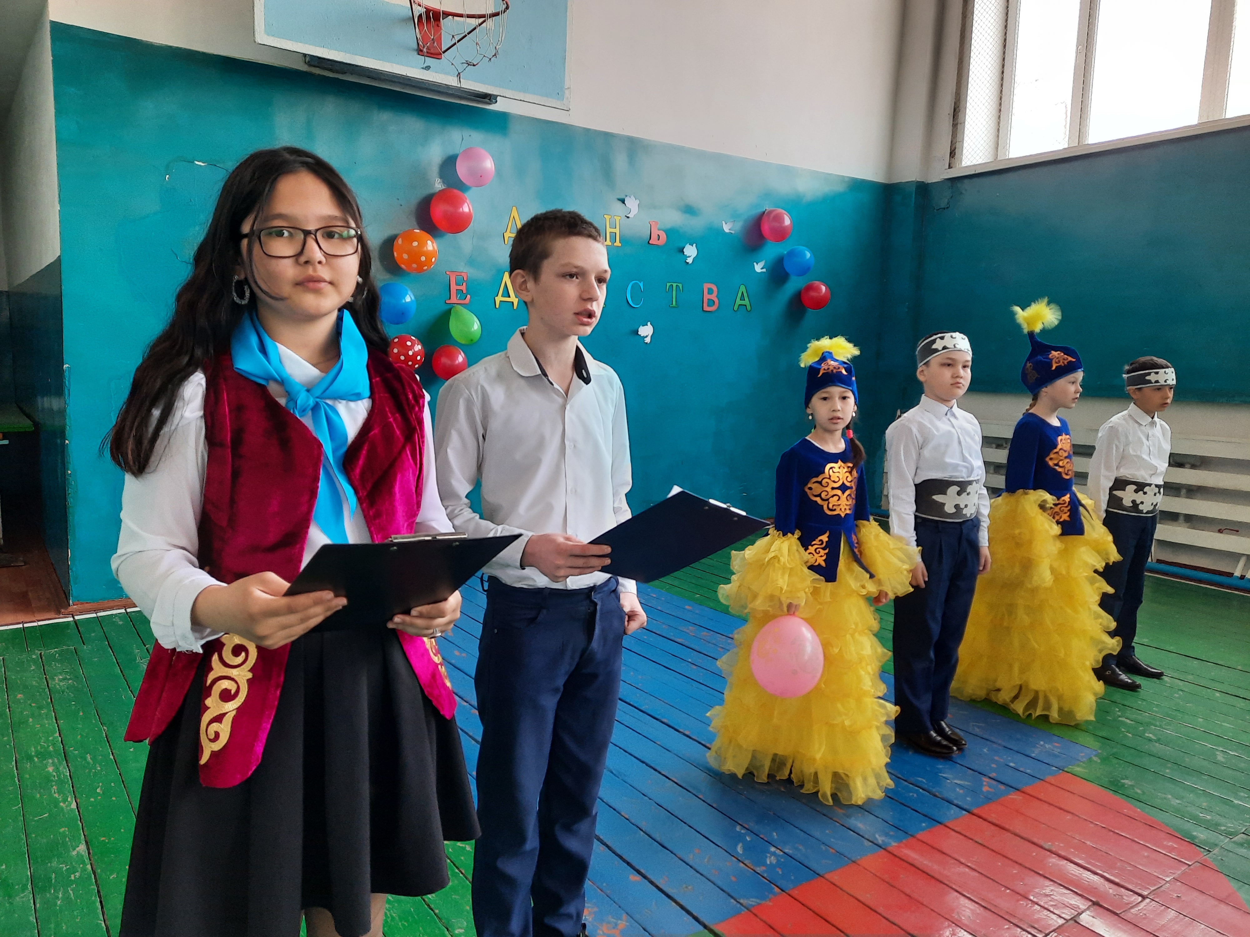 25 апреля в КГУ "Железенская общеобразовательная школа" прошёл единый классный час, посвящённый Дню единства народа Казахстана. Коллектив школы собрался в спортзале, в национальных костюмах, с хорошим настроением. Ребята читали стихи, танцевали, пели песни. В конце мероприятия все взялись за руки и спели песню "Пусть всегда будет Солнце" на трёх языках